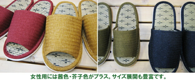 日本製 い草の薫る畳中和風スリッパ 無地プレーン 前あき型 茜 芥子 抹茶 藍 S〜LLサイズ